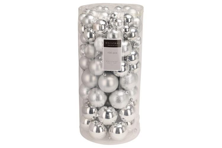 Xmas Balls Ps 100Pcs Packed In Pet Tube Color: Silver Size: 26X 80Mm 9X Embossed 4X Matt And 13X Shiny Size: 17X 70Mm 5X Emossed 5X Matt And 7X ShinySize:27X 60Mm 6X Embossed Mini Pumping Shiny 5X Embossed Mini Pumpkin Matt 4X Embossed 4X Matt And 8X Shiny Size: 15X 50Mm 4 Embossed 4X Matt And 7X Shiny Size: 15X 40Mm 9X Embossed 4X Matt And 13X Shiny