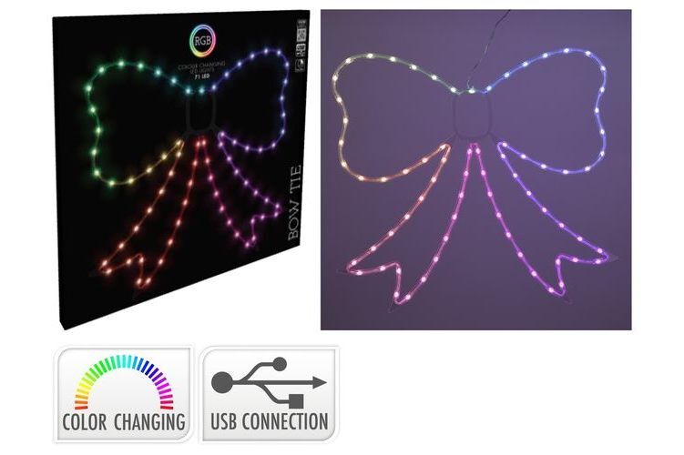 Controler Function Bow Tie With Rgb Led 71Led Colour Changing Materials: Ps Pvc And Copper Size: 55X0.6X60Cm Leadwire: 10 Meter Usb Connector With Controller Fsc Certified Packing