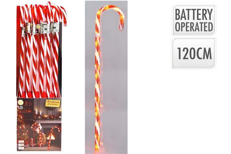 5 Functions Battery Included Candy Cane With 20Led Lights Pspvc And Copper Size: 210X25X1200Mm 20X Warm White Led Lights 5 Functions On The Led 3X Lr44 Batteries Included 12Pcs Packed In Closed Display