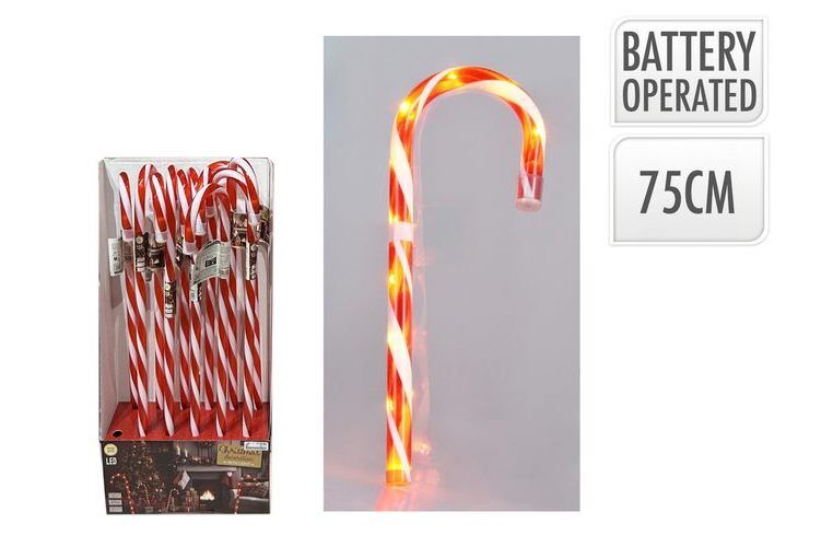 5 Functions Battery Included Candy Cane With 20Led Lights Pspvc And Copper Size: 130X18X750Mm 20X Warm White Led Lights 5 Functions On The Led 3X Lr44 Batteries Included 12Pcs Packed In Closed Display