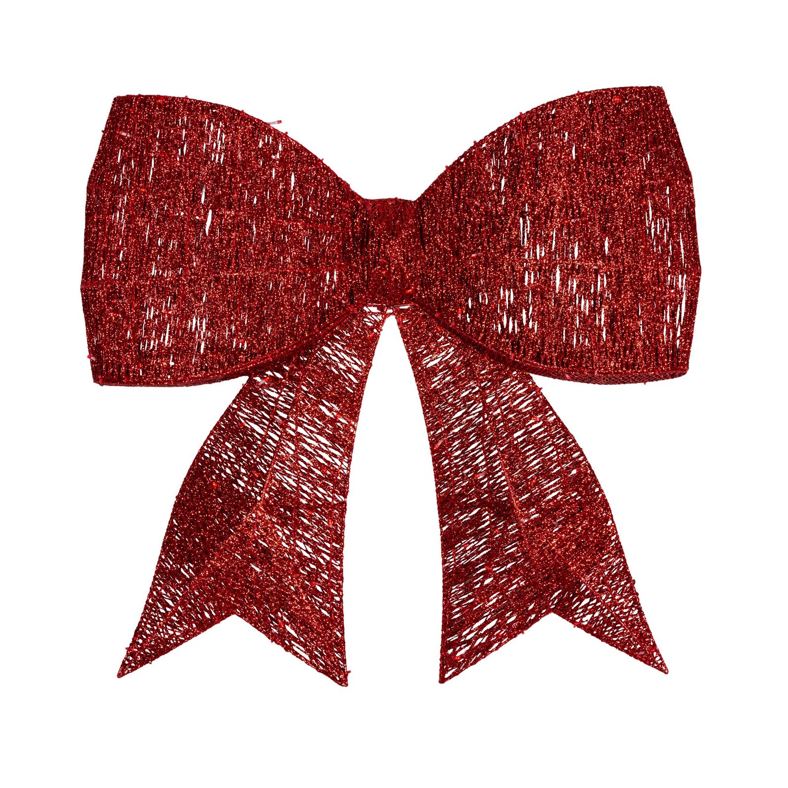 For stunning visual impact, this red hanging bow won't be missed. This beauty sparkles thanks to the glitter string finish and is 91cm wide. It has a mix of steady and twinkle red lights with 5 functions for extra Christmas bling. This bow is light enough to hang easily, can be used inside or out and the red finish is perfect to stand out at Christmas.