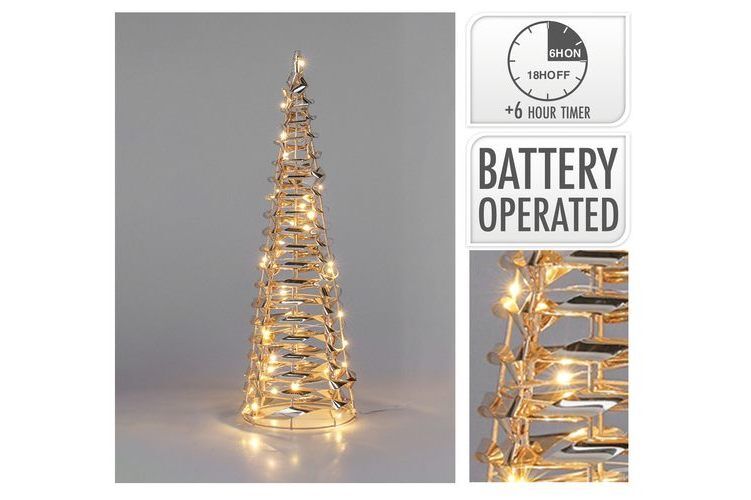 Timer Cone With 20X Ww Micro Led Material Pet And Iron Decorated With Twisted Design Gold Colour Size: 12X12X40Cm. B/O Ip20 2X Aa Batteries Not Included 30Cm Leadwire 6/18 Hrs Timer