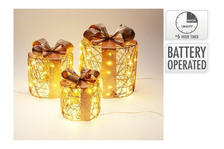 Timer Giftbox Set Round With Led Iron 3 Sizes: Small (20X Ww Led 2X Aa) Medium (30X Ww Led 3X Aa) Large (40X Ww Led 3X Aa) With Pet Strip In Champagne Gold Colour Transparent Lead Wire 30Cm Bulb Distance 10Cm Ip20 Battery Operated Batteries Not Included With 6/18 Timer