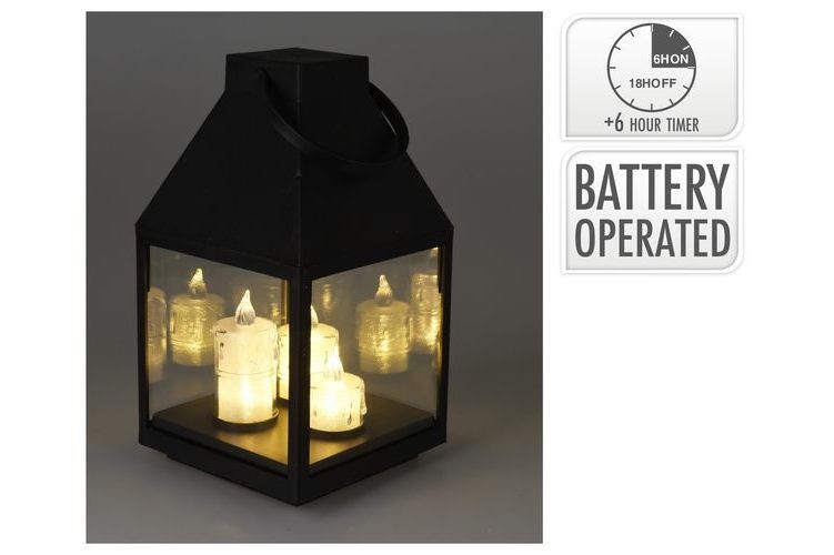 Flickering Timer Lantern With 3 Led Candles Pp Glass Weight: 500 Gram Size: 135X135Mx25Cm1X Warm White Led White Led Candles Black Lantern B/O 3X Aaa Batteries Not Included With 6/18 Timer