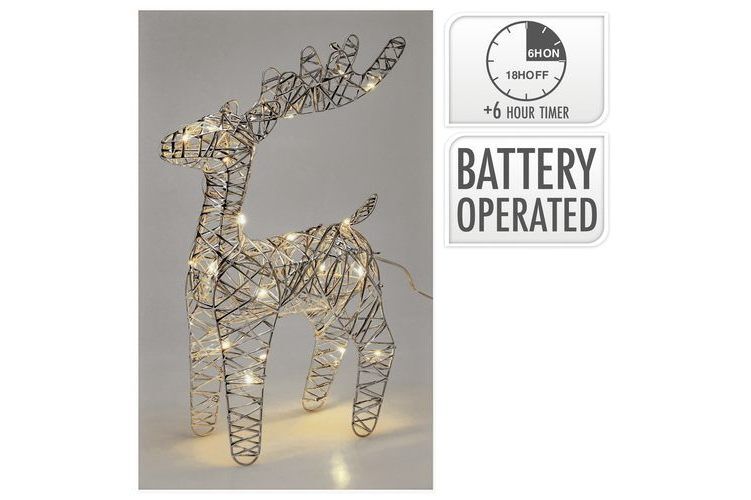 Timer Reindeer With Led Iron Size: 20X7X34Cm With Pet Strip In Silver Colour 25X Warm White Micro Led Transparent Lead Wire 30Cm Bulb Distance 10Cm Ip20 Battery Operated 2X Aa Batteries Not Included With 6/18 Timer