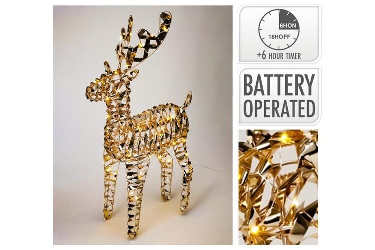Timer Reindeer With 60X Ww Micro Led Material Pet And Iron Decorated With Twisted Design Shiny Gold Colour Size: 36X14X60Cm B/O Ip20 3Xaa Batteries Not Included 30Cm Leadwire 6/18 Hrs Timer