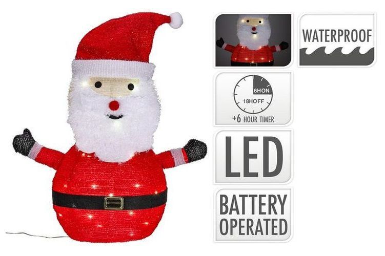 Timer Memory 68cm Santa 3D With 30X Warm White Led (2700 K) Foldable Figure For Outdoor Use Ip44 Size: 63X40X68Cm Clear Cable Warm White Cable 0.5M3Xaa Battery (Excl.)0.9W 3V/20Ma With Timer 6/18Hours 50Cm Leadwire And 15Cm Bulb Distance Iron Pvc Copper And Polyester Materials Red And White Colours