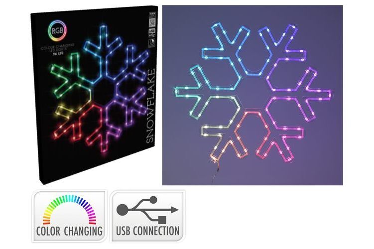 Controler Function Snowflake With Rgb Led 90Led Colour Changing Materials: Ps Pvc And Copper Size: 50X0.6X43Cm Leadwire: 10 Meter Usb Connector With Controller Fsc Certified Packing