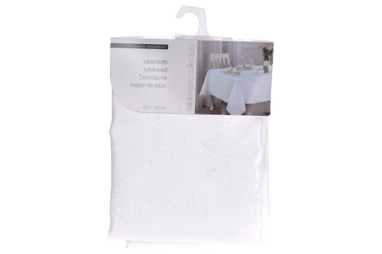 Premium 130Gsm Tablecloth Damask Size 220X150Cm 100 Percent Polyester. 130 Gram Per Square Meter. White Tablecloth With Silver Xmas Star Design